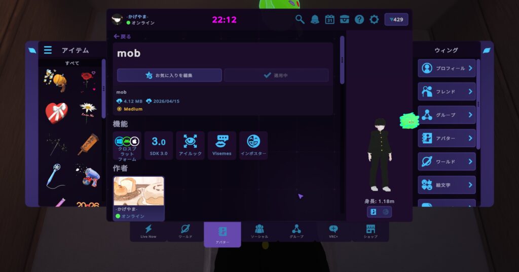 2026.2.21TAGとモブサイコ100コラボレーションで、販売されているモブ君のアバターに関しては一応コマノ以外は購入しているので、覚え書きを書いておきます。コマノは霊幻新隆のアバターを買ったので身長差をあえて楽…
